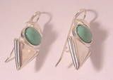 Genuine STERLING SILVER ARROW EAR BOB DROP PIERCED EARRINGS VINTAGE GREEN STONE MINT
