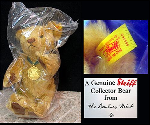 Genuine Steiff Collector Bear from the Danbury Mint with original box, has Steiff button in ear and is in its original bag