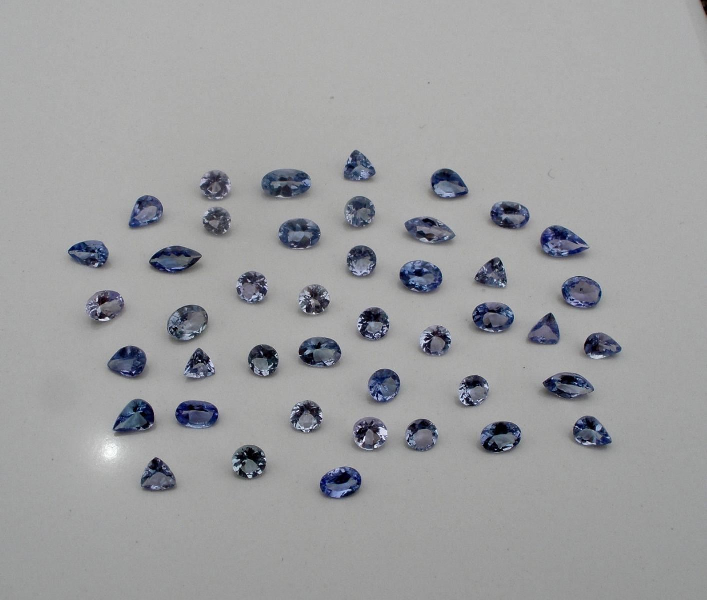 Genuine Tanzanite Mix Shapes 10 Carats, SHAPE: Mix;CUT: Faceted;COLOR: very light Purple/Lavender;ORIGIN: TanzaniaLUSTER: Very NiceSIZE: (2.5mm to 6mm )TREATMENT: HeatedHARDNESS: 7 to 7.5GRADE: A