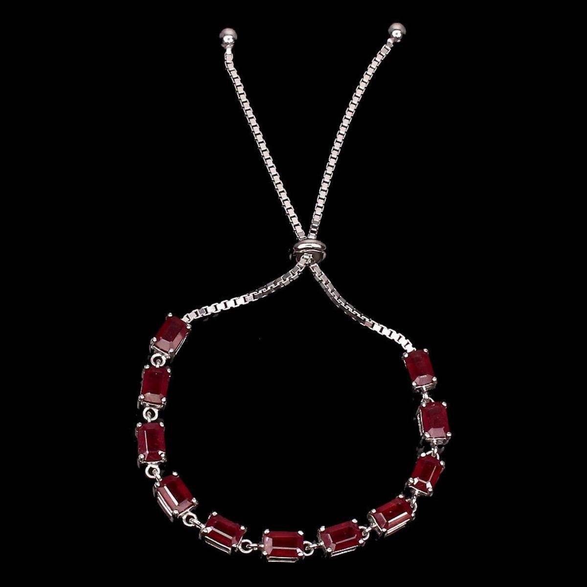925 STERLING SILVER;PLATE...14K WHITE GOLD;LENGTH (INCHES)11;MAIN STONERUBYOTHER GEMSTOTAL WEIGHT45.90 CT (TOTAL WEIGHT OF SILVER + STONE)DIMENSION* STONE 6.0 X 4.0 MM. * FACE BRACELET 105.0 X 5.0 MM.MAIN STONE SHAPEOCTAGON CUTMAIN STONE COLORTOP BLOOD REDCLARITY/GRADETRANSPARENTLUSTERFASCINATINGTREATMENT- Yes;ORIGINMADAGASCARHARDNESS9