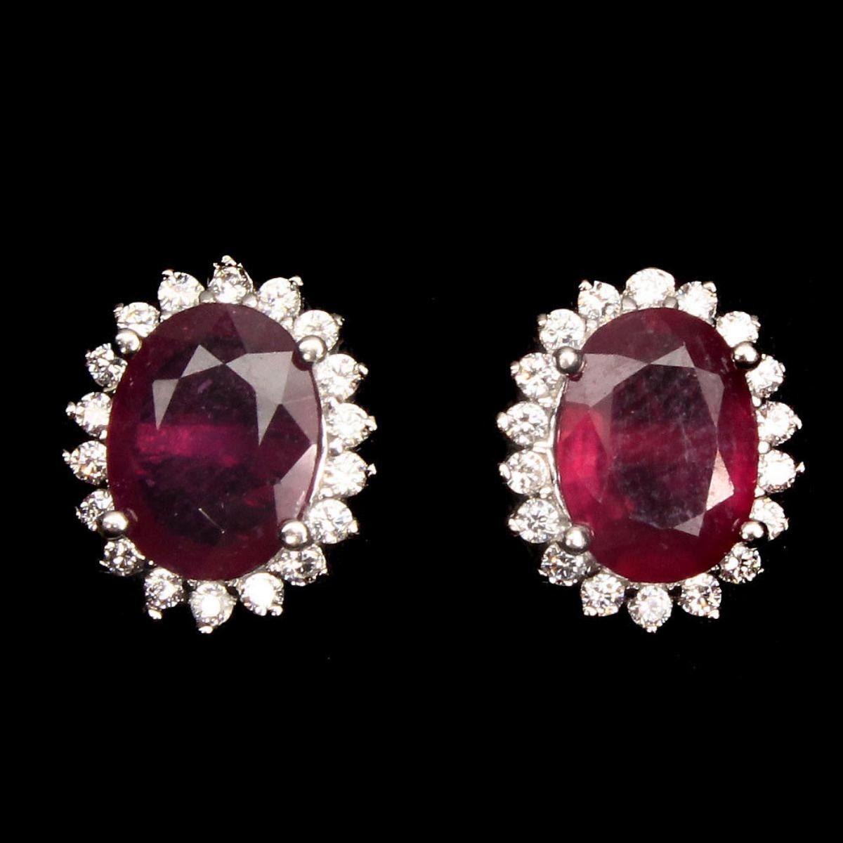925 STERLING SILVER;PLATE14K WHITE GOLD;MAIN STONERUBY;OTHER GEMSCUBIC ZIRCONIATOTAL WEIGHT12.10 CT (TOTAL WEIGHT OF SILVER + STONE)DIMENSION* STONE 8.0 X 6.0 MM. * CZ 1.0 MM. * FACE EARRINGS 11.0 X 9.0 MM.MAIN STONE SHAPEOVAL CUTMAIN STONE COLORTOP BLOOD REDCLARITY/GRADETRANSPARENTLUSTERELEGANTTREATMENT- yes;ORIGINMADAGASCARHARDNESS9.0