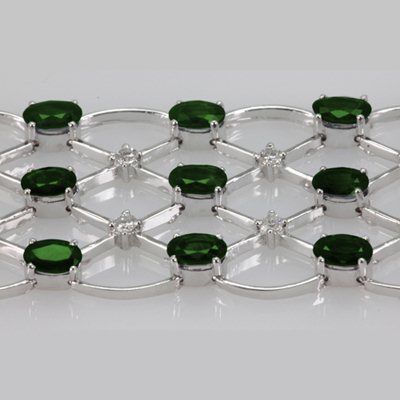 Genuine Vintage Design 21.73 ctw Emerald Bracelet 14K **|**|** Metal Purity: 14K ; Metal: White or Yellow Gold ; Diamond Count: 26 RD ; Diamond Weight: 1.45 ctw ; Clarity/Color: SI-I/G-H ; Gemstone Weight: 20.28 ; Gemstone Dimension: 6X4mm ; Gemstone Clarity: AA-AAA ; Gold Weight: 33 grams ; Availability: 3-10 Business days, ready to ship, with certification of appraisal will take 2 weeks. ; MSRP: $10807