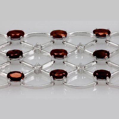 Genuine Vintage Design 22.9 ctw Garnet Bracelet **|**|** Metal Purity: 14K ; Metal: White or Yellow Gold ; Diamond Count: 26 RD ; Diamond Weight: 1.45 ctw ; Clarity/Color: SI-I/G-H ; Gemstone Weight: 21.45 ; Gemstone Dimension: 6X4mm ; Gemstone Clarity: AA-AAA ; Gold Weight: 33 grams ; Availability: 3-10 Business days, ready to ship, with certification of appraisal will take 2 weeks. ; MSRP: $7574