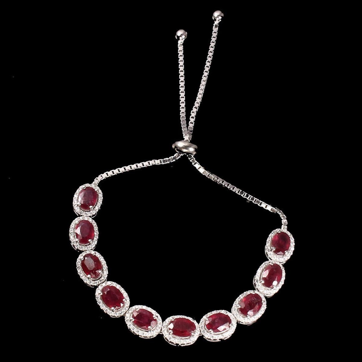 925 STERLING SILVERPLATE14K WHITE GOLDRING SIZE/LENGTH (INCHES)10MAIN STONERUBYOTHER GEMSCUBIC ZIRCONIATOTAL WEIGHT67.18 CT (TOTAL WEIGHT OF SILVER + STONE)DIMENSION* STONE 7.0 X 5.0 MM. * CZ 1.0 MM. * FACE BRACELET 100.0 X 7.0 MM.MAIN STONE SHAPEOVAL CUTMAIN STONE COLORTOP BLOOD REDCLARITY/GRADETRANSPARENTLUSTERMESMERIZINGTREATMENT- Yes;ORIGINMADAGASCARHARDNESS9