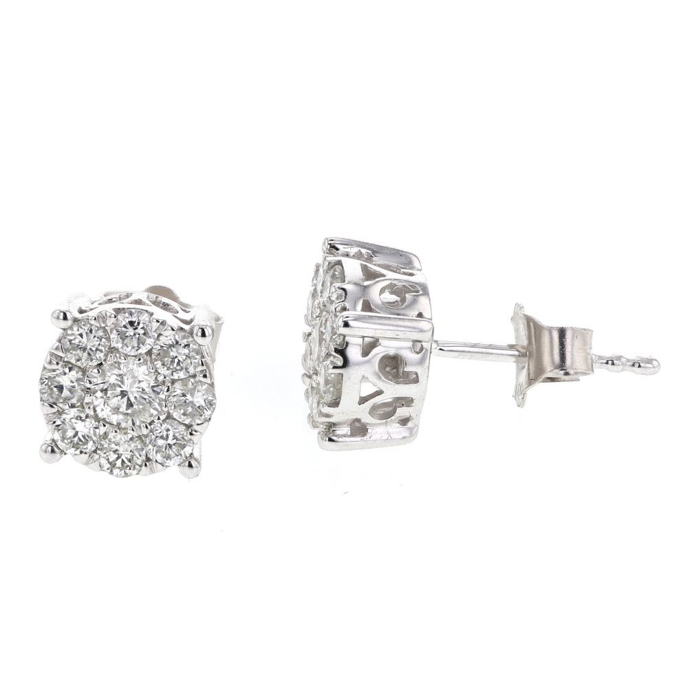 Genuine White Diamond Cluster Earring in 18K White Gold |438597 Grams, featuring 0.98 ct 18 ct ct 18 ct