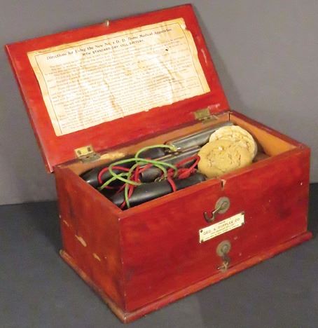 Geo. A Supplee Co. Home Medical Quack Apparatus. Original tag and directions. Box opens from top and bottom. Good original condition.