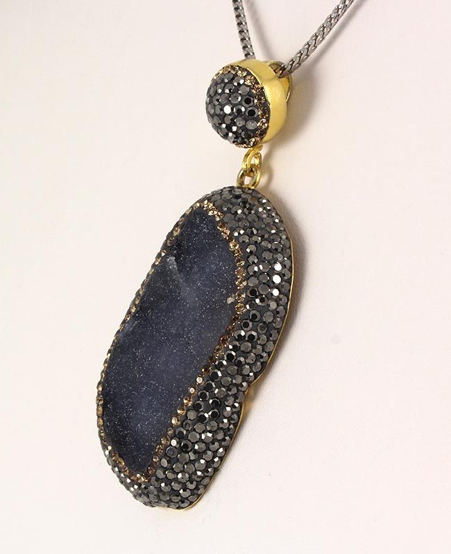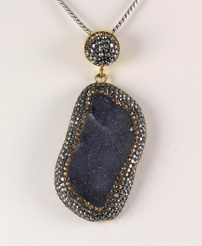 Geode Druzy Natural Stone Pendant Victorian Design **|**|** 23.72g Geode Druzy Bluish Purple Drop Natural Stone Pendant in Victorian Design w/ CZ diamonds; 925 stamp gold plated ; MSRP: $200