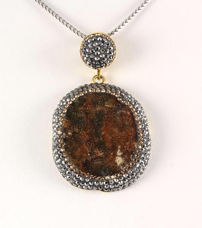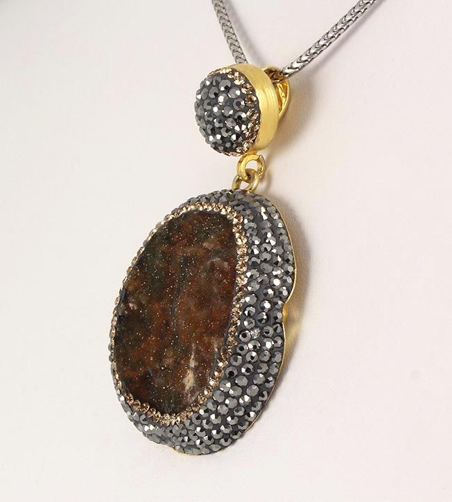 Geode Druzy Natural Stone Pendant Victorian Design **|**|** 20.43g Geode Druzy Smokey Quartz Drop Natural Stone Pendant in Victorian Design w/ CZ diamonds; 925 stamp gold plated ; MSRP: $100