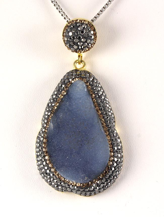 Geode Druzy Natural Stone Pendant Victorian Design **|**|** 22.65g Geode Druzy Bluish Purple Drop Natural Stone Pendant in Victorian Design w/ CZ diamonds; 925 stamp gold plated ; MSRP: $200
