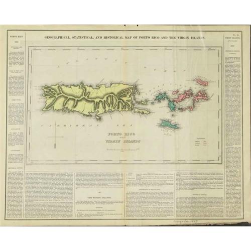 Geographical ,Statistical , and Historical Map of Porto Rico and Virgin Islands dated as 1822 detailed and Illustrated in a text on the front side of the map, in very good condition Region: West Indies: Puerto Rico Catalogue : The Old Print Gallery: Showcase; Vol.XXII, Number 4; December 1995Item Number: p87 Illustrated: Yes AMPR volume: 1996