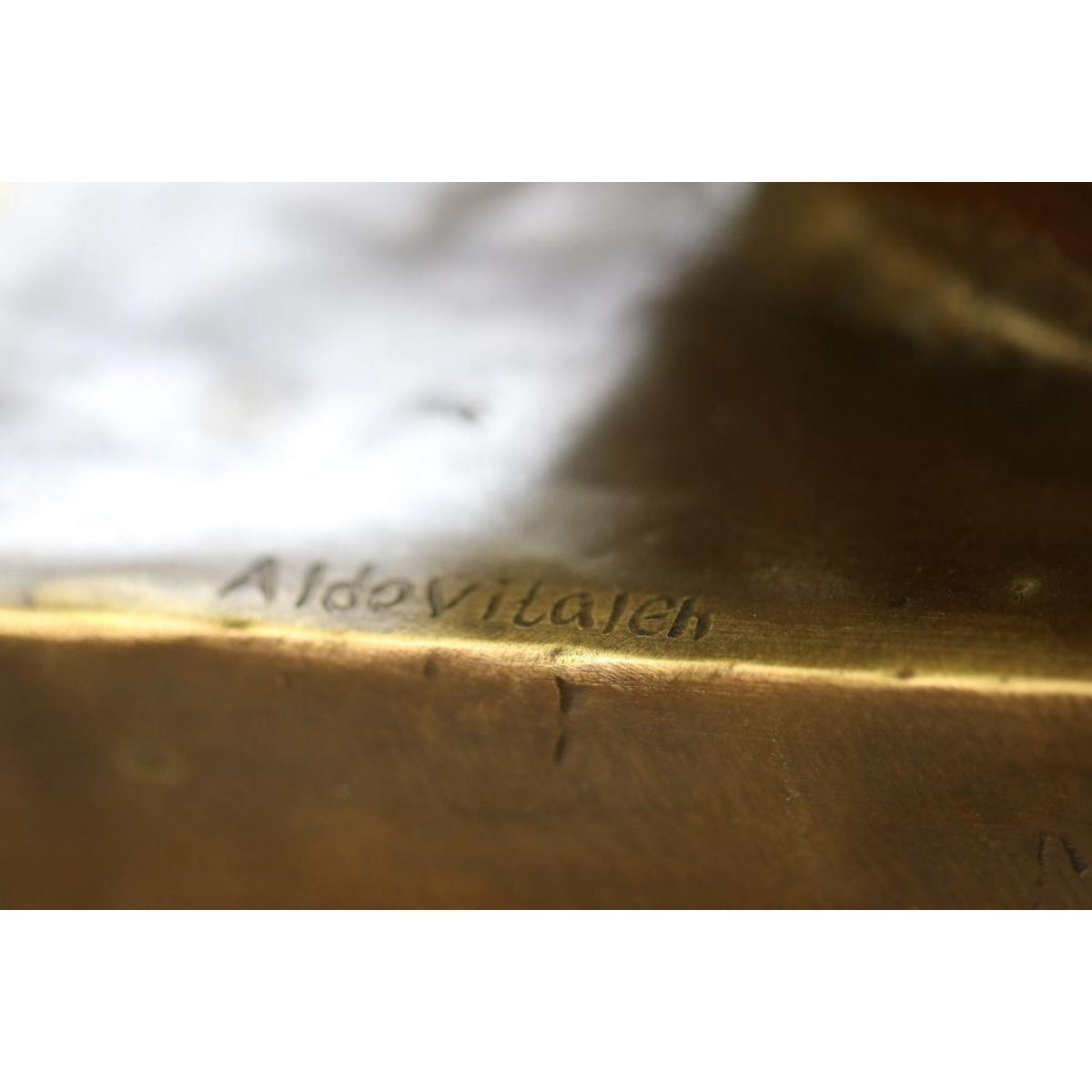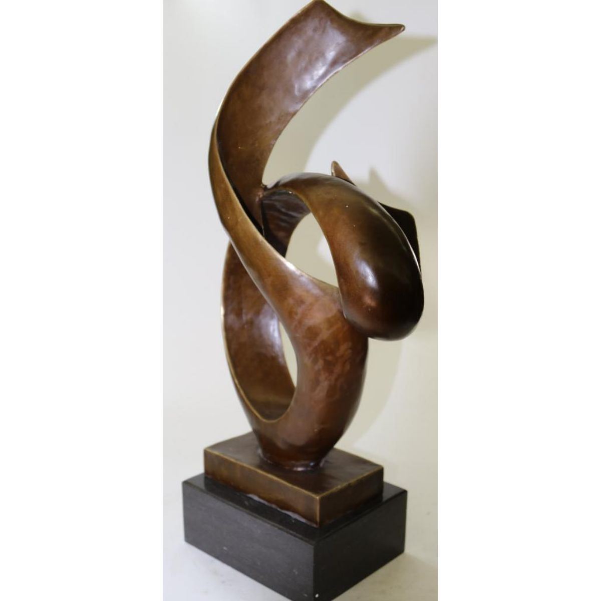 "Geometric Abstraction" large size modern sculpture. Signed Aldo Vitaleh on base. Lost wax casting method bronze, with brown patina, mounted on marble base. 30" H X 18" W. 68lbs. Â