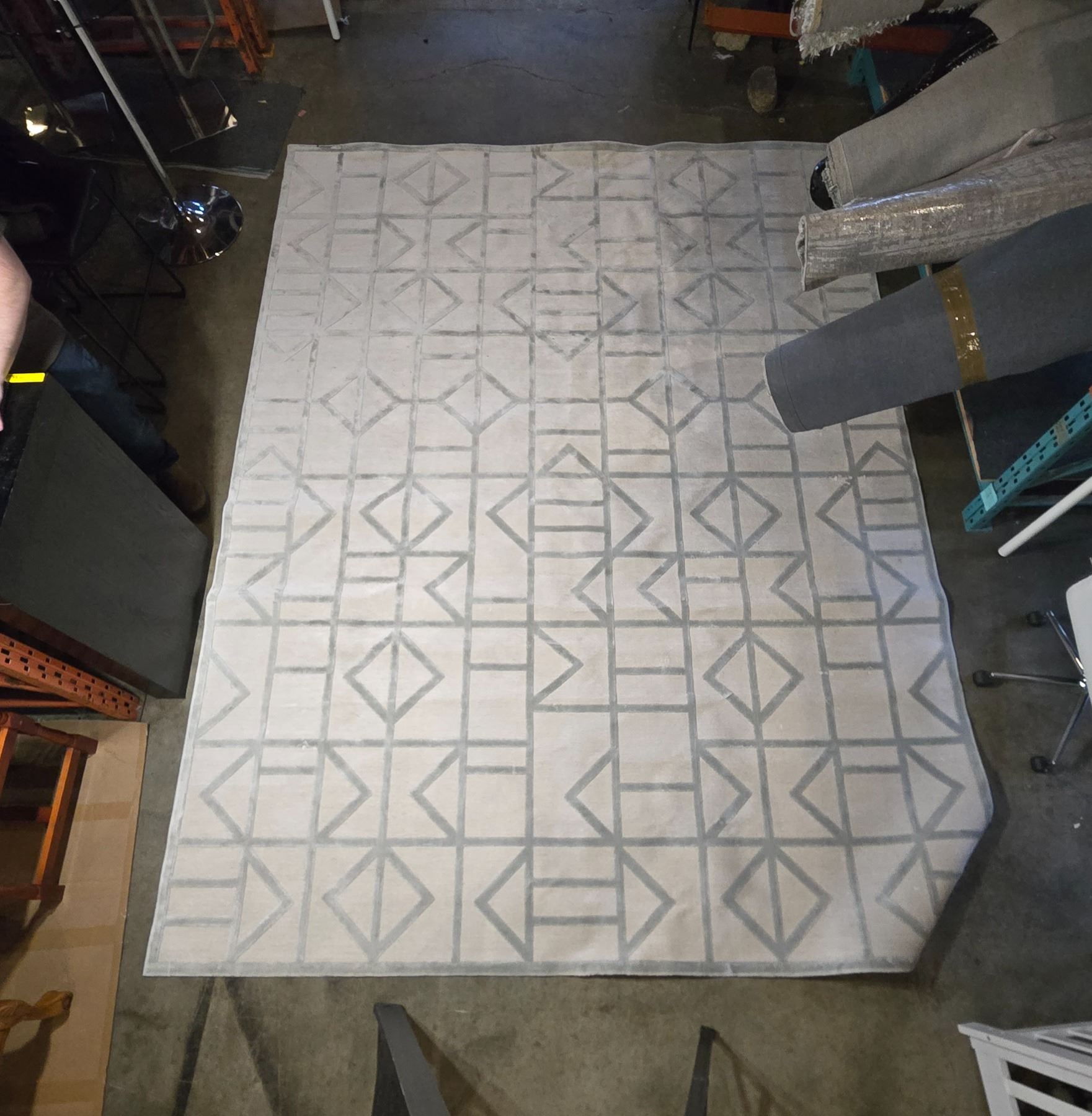Geometric Area Rug - Cream & Gray - 114x108"