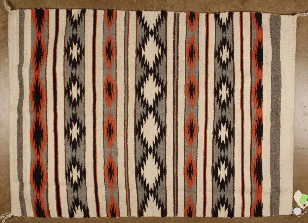 In white, black, grey and peach. Measures 49" x 34". In overall good condition.