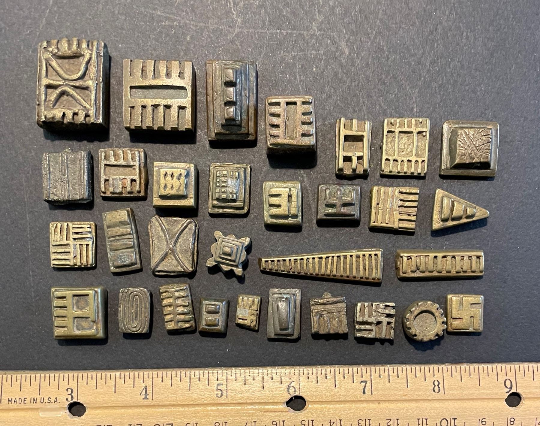Description: A collection of over 30 varieties of Akan/Ashanti geometric gold weights in a range of sizes. See Opitz, pp. 375-76.