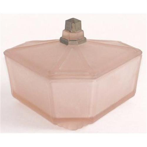<tr><td>Title:Geometric Pink Satin Glass Art Deco Powder Jar</td></tr>