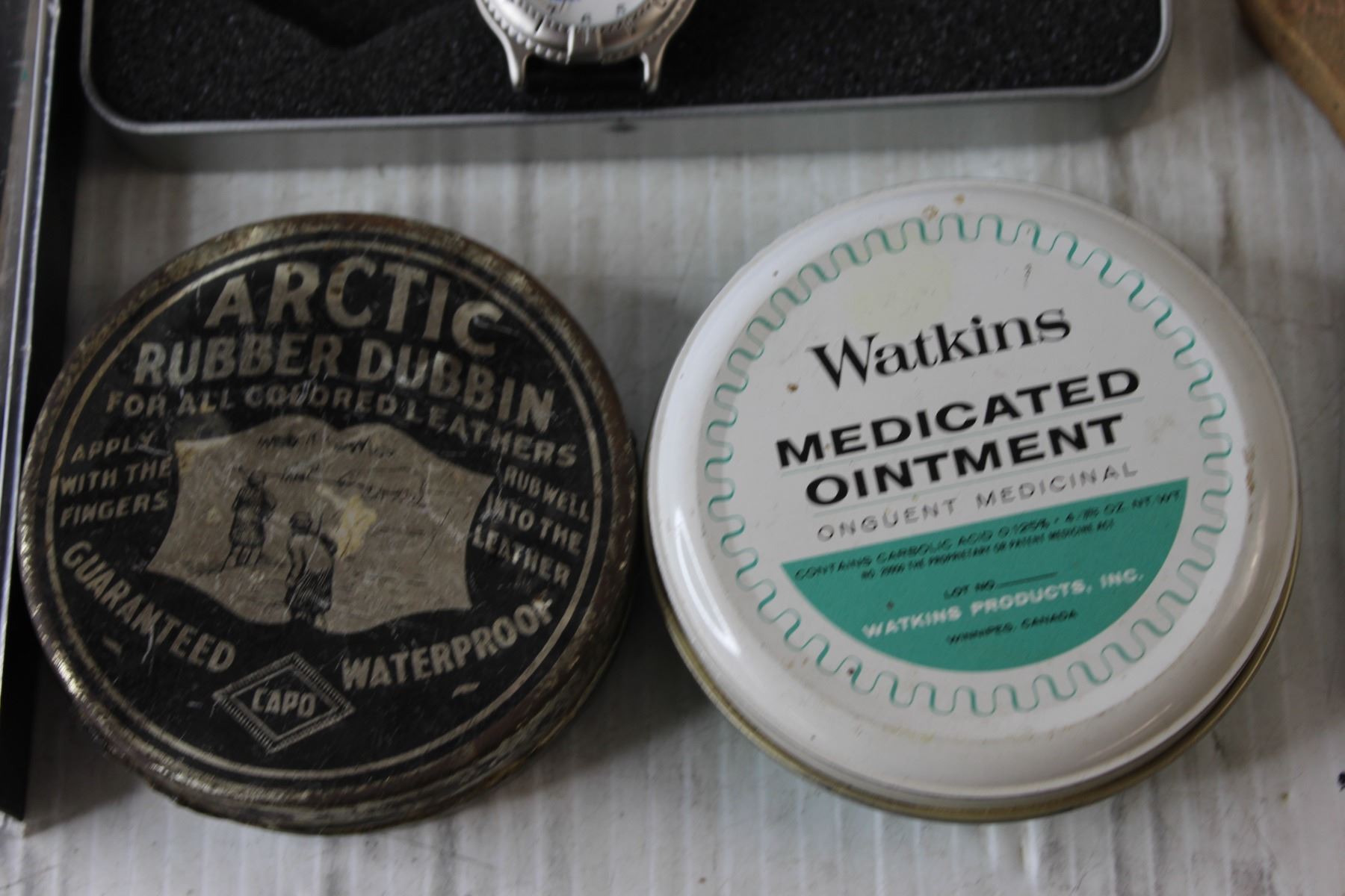 Geometry Set + Watch + (2) Tins + Sling Shot