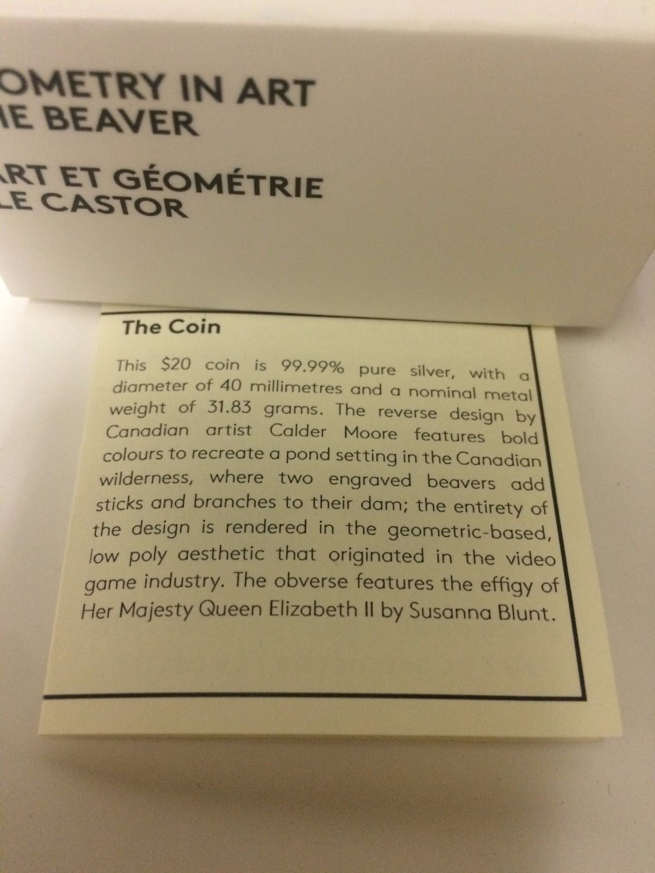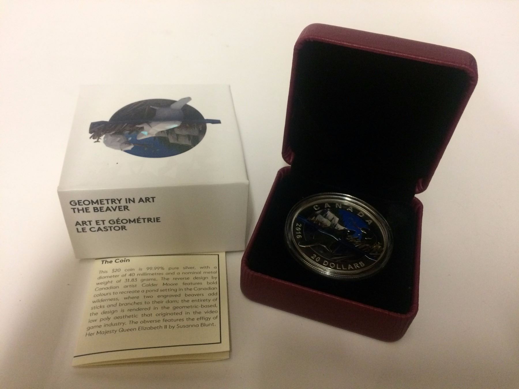 Geometry in Art The Beaver $20 Coin ( 99% pure silver )