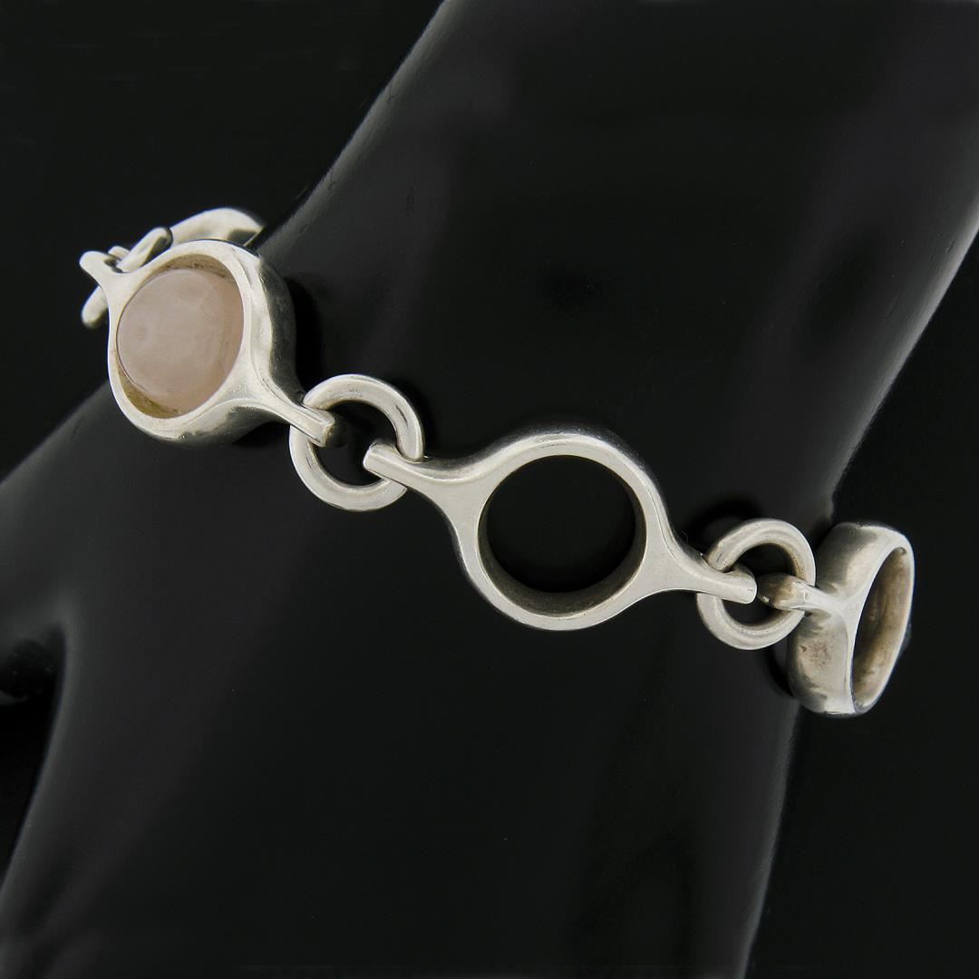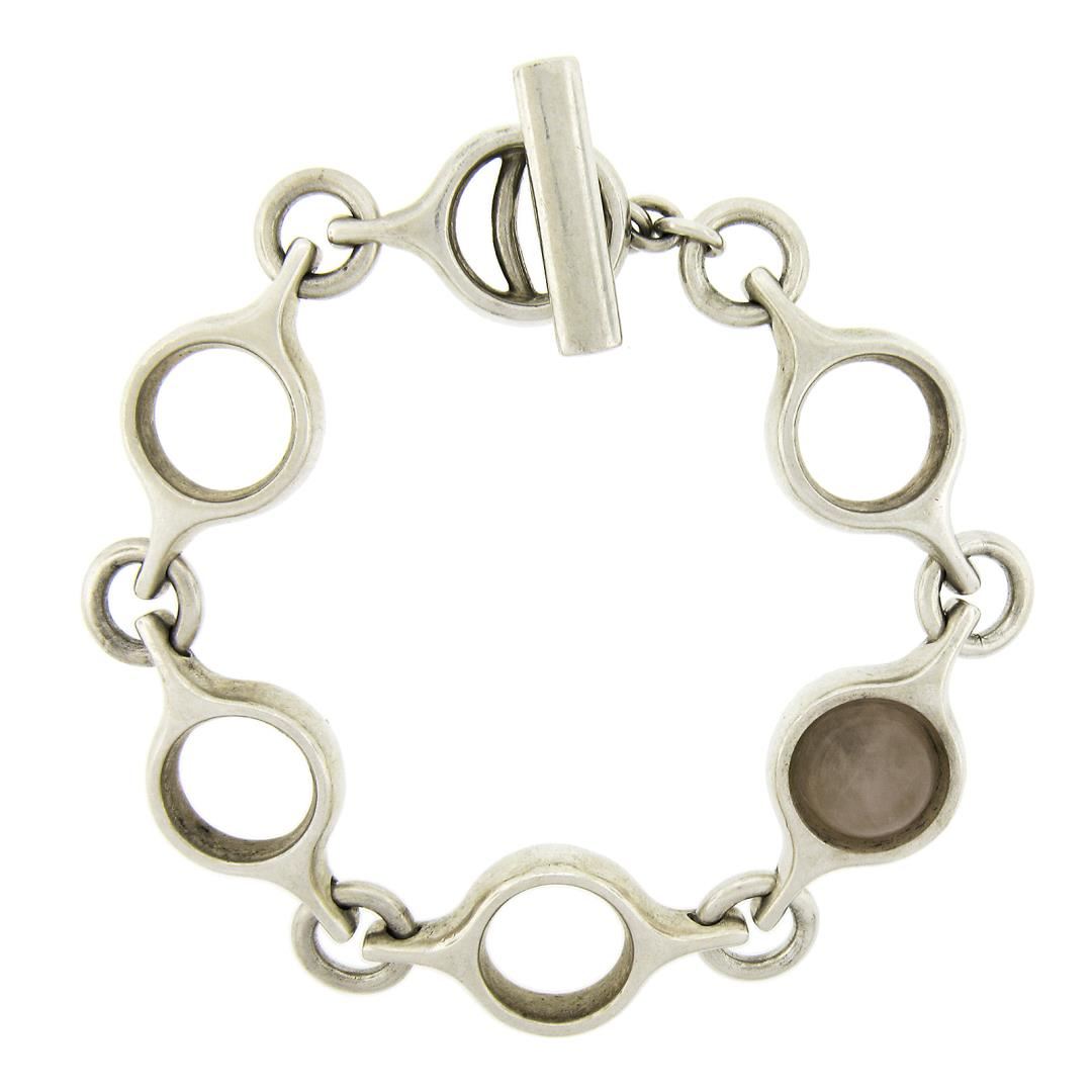 Georg Jensen Silver Open Round Link Chain 474 Bracelet w/ Toggle Clasp & Quartz