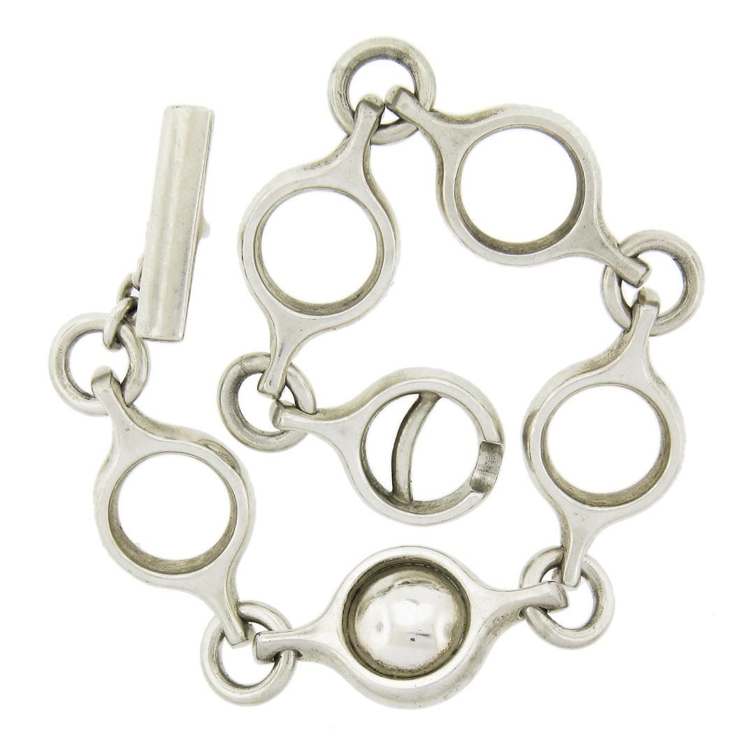 Georg Jensen Silver Open Round Link Chain 474 Bracelet w/ Toggle Clasp & Quartz
