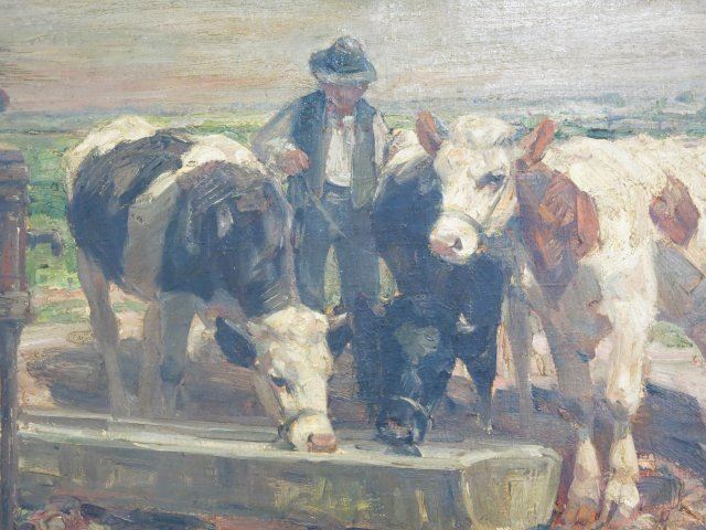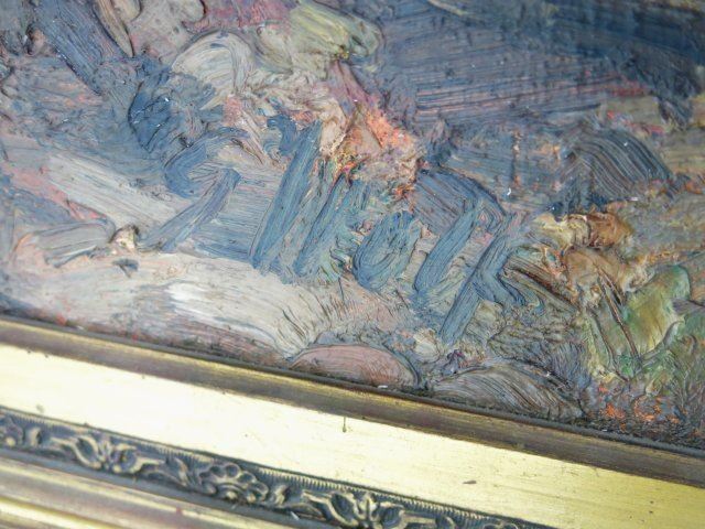 Oil on canvas. Gilt framed. Signed lower right. Georg Wolf, German (1882-1962). Approx. 19" x 27" unframed, 30" x 38" framed. Flaking in upper left corner.