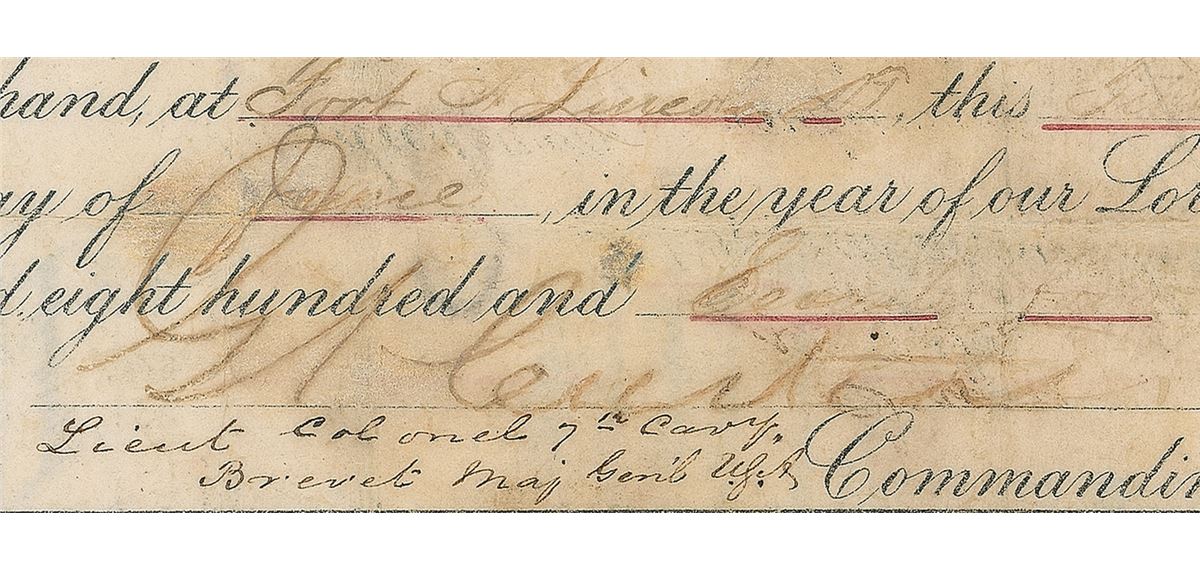 Fort Abraham Lincoln in the Dakota Territories was General Custer’s final post, held from 1873 until his death in June of 1876. Nine days after signing this document, he moved his forces out of Fort Lincoln for a scouting mission to the Black Hills; after several weeks, they returned with information that the Sioux were not using the Hills. His next expedition to the same location would come two years later, and end with the Battle of the Little Bighorn. Documents signed by Custer as commander of the 7th Cavalry are rare and always desirable.