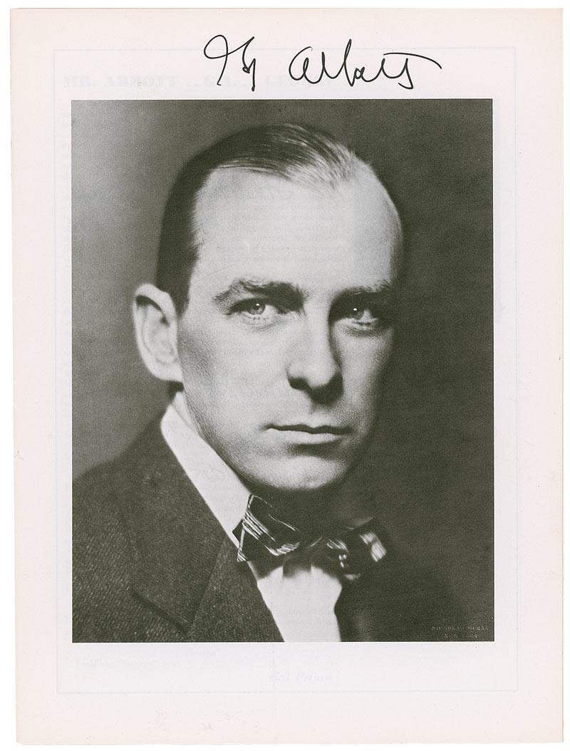 Playwright, screenwriter, and theatrical producer (1887–1995) whose collaborations included The Pajama Game, Damn Yankees, and Fiorello! Souvenir program from a performance honoring the career of George Abbott, 9 x 12, signed in black ink on the first page, “George Abbott.” In fine condition, with scattered handling wear.