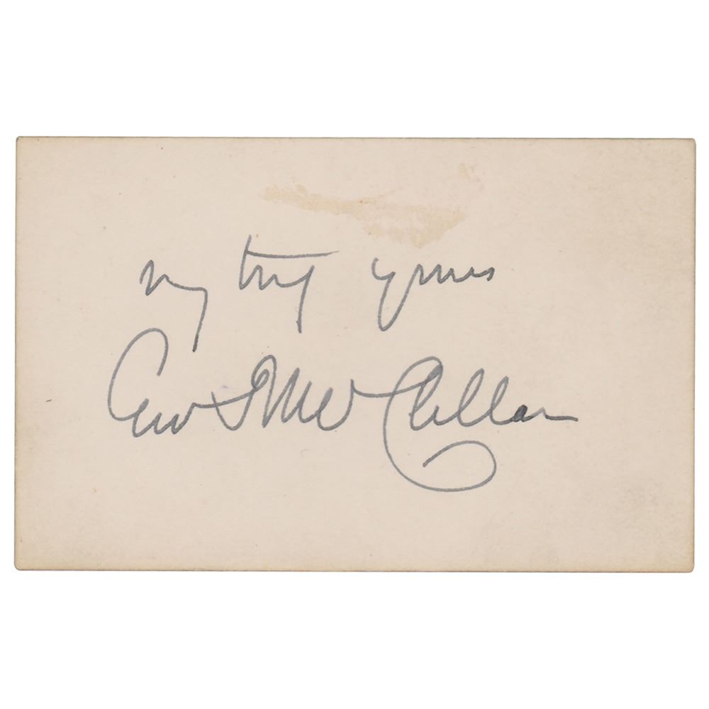 Ink signature, "Very truly yours, Geo B. McClellan," on an off-white 3 x 1.75 card. In fine condition, with a very light stain above the sentiment.