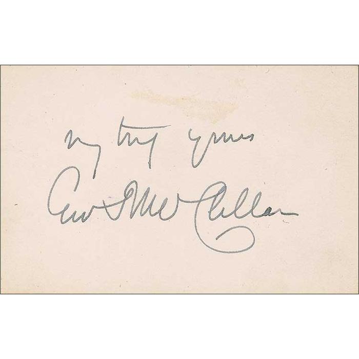 Ink signature, “Very truly yours, Geo B. McClellan,” on an off-white 3 x 1.75 card. In fine condition, with a very light stain above the sentiment. RRAuction COA.