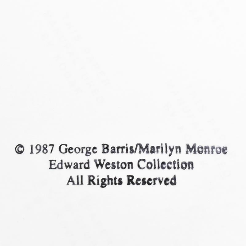 "Marilyn Monroe: The Last Shoot" is a photograph printed from the original negative taken by George Barris (1922-2016), hand signed by the photographer. This photo is part of a series entitled "The Last Photos"; they were taken in 1962 just two weeks before Monroe's death and are considered the last photos ever taken of the icon. This photo bears the Edward Weston copyright stamp inverso and Includes Letter of Authenticity. Measures approx. 14" x 11" (image). Due to the age of the piece the paper is slightly wavy.