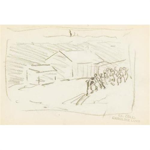 <B>GEORGE BENJAMIN LUKS (American, 1867-1933)</B></I><BR><I>The Act </B></I>and <I>Gathering (A Study)</B></I> (pair)<BR>Graphite on paper<BR>4 x 5-3/4 inches (10.2 x 14.6 cm) each<BR> <BR>PROVENANCE: <BR>Collection of Caroline Luks<BR><BR>EXHIBITED:<BR>Arkansas Arts Center, Little Rock, Arkansas, 1978 (<I>The Act</B></I>);<BR>Sheldon Swope Art Gallery, Terre Haute, Indiana, 1977 (<I>Gathering</B></I>)<BR>