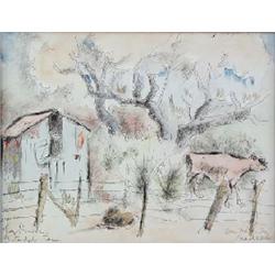 George Biddle (1885-1973) (Colorado) Ink & Watercolor, "Landscape with Cow," 1940, 5" x 8", signed lower left, Est $1,500 - $2,000