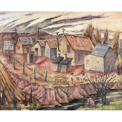 George Biddle (1885-1973) Oil on Canvas "Hooterville" 1940 Signed lower left 16" x 20"