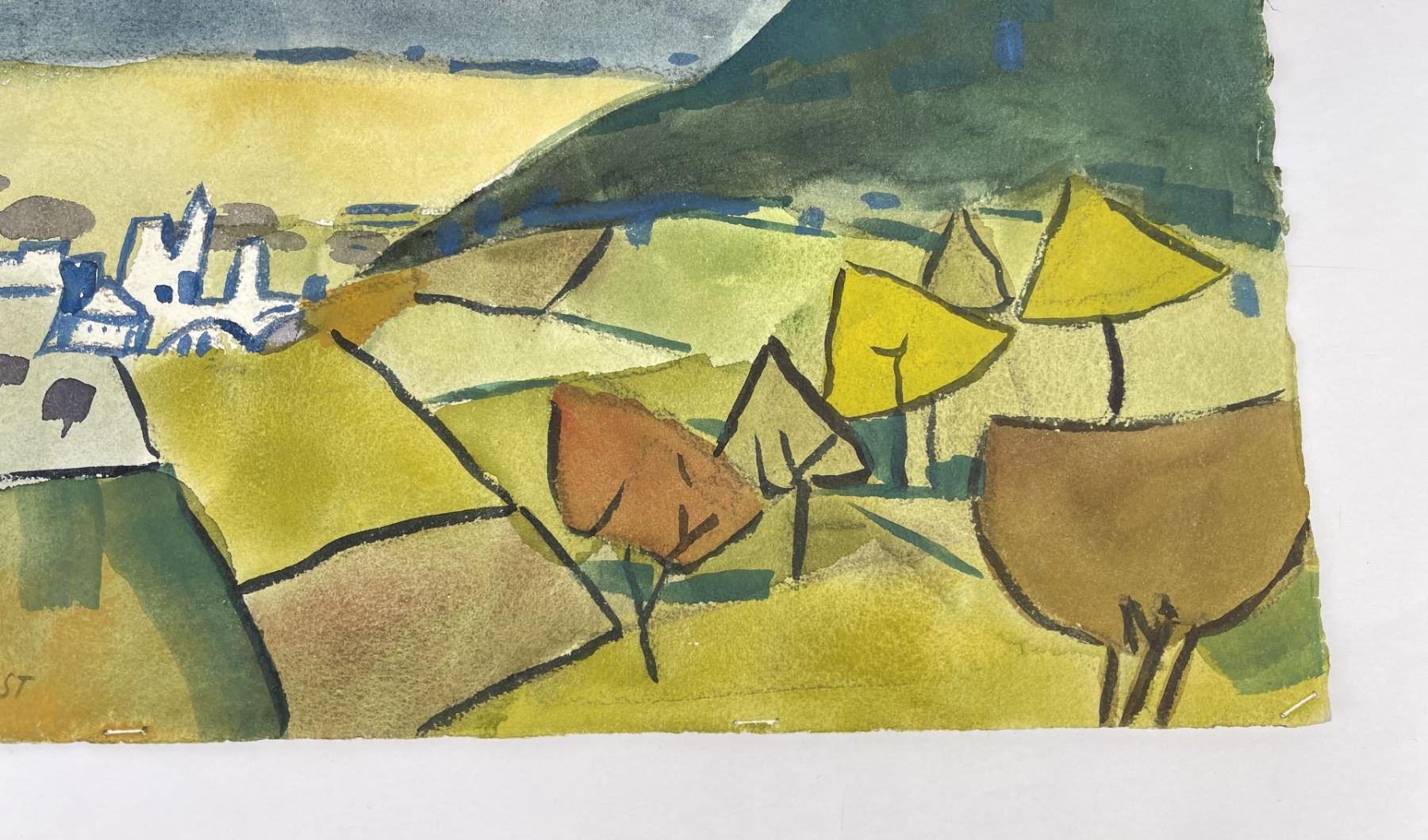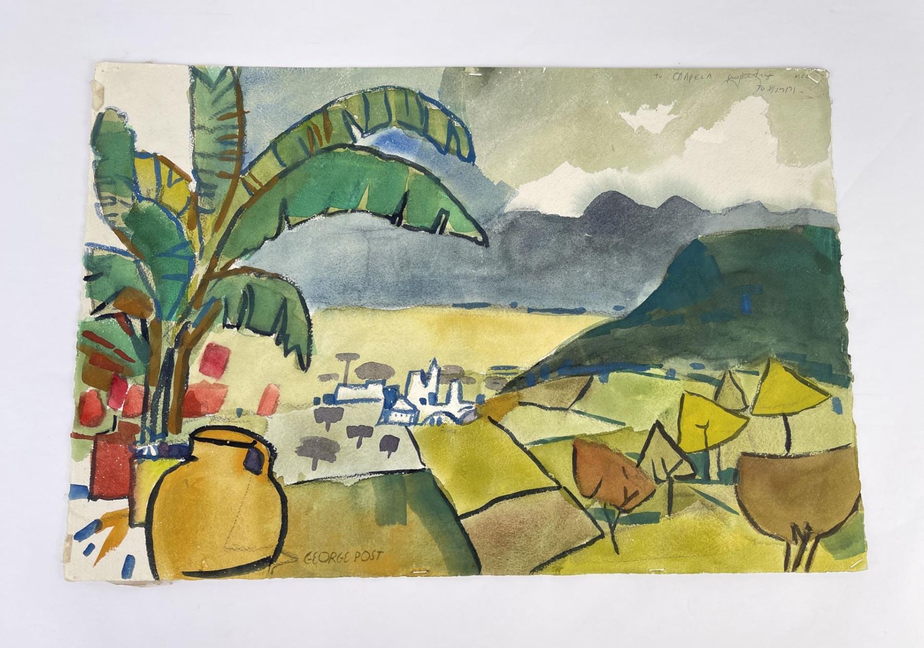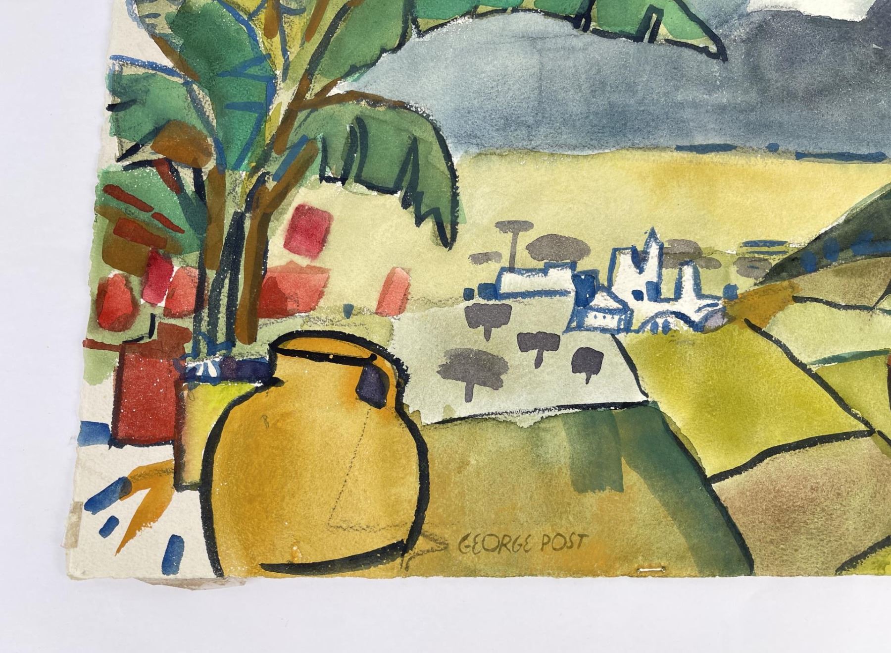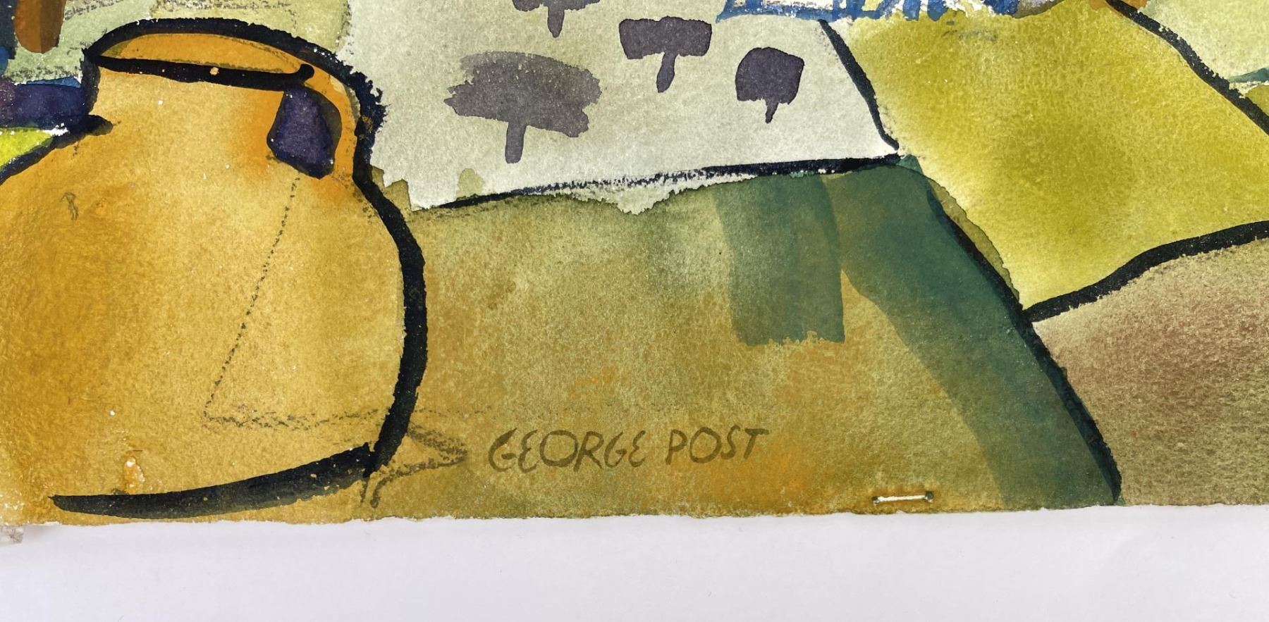 15" by 22". Born in Oakland, CA on Sept. 29, 1906. Post settled in San Francisco in 1919 and, after graduating from Polytechnic High School, studied at the CSFA (1924-26). He began exhibiting in the early 1930s and received favorable criticisms for his watercolors of the San Francisco Bay area and the Mother Lode country. He taught at Stanford University (1940), San Jose State College (1951-52), and the CCAC (1947-72). Having traveled and painted around the world, Post lived in San Francisco until his demise on March 26, 1997. Exh: Beaux Arts Gallery (SF), 1931 (solo); SF Art Center, 1932-34; SFMA, 1936, 1941 (solos); Calif.-Pacific Int'l Expo (San Diego), 1935; AIC, 1936; Calif. WC Society, 1936-53 (prizes); CPLH, 1939, 1945, 1960, 1965 (solos); Oakland Art Gallery, 1936, 1937 (solo), 1947 (prize); LACMA, 1936, 1945 (prize); Laguna Beach Museum, 1942 (solo); Springfield (MO) Museum, 1966; Zellerbach Show (SF), 1975 (1st prize); Challis Gallery (Laguna Beach), 1979 (solo); SWA, 1979 (1st prize). In: CHS; MM; SFMA; CPLH; Oakland Museum; Seattle Museum; San Diego Museum; Santa Barbara Museum; Mills College (Oakland); Sonora High School (mural). Edan Hughes, "Artists in California, 1786-1940" Interview with the artist or his/her family; Who's Who in American Art 1938-70; Who's Who in California 1942; California Art Research, 20 volumes; Artists and People; SF Chronicle, 4-2-1997 (obituary).