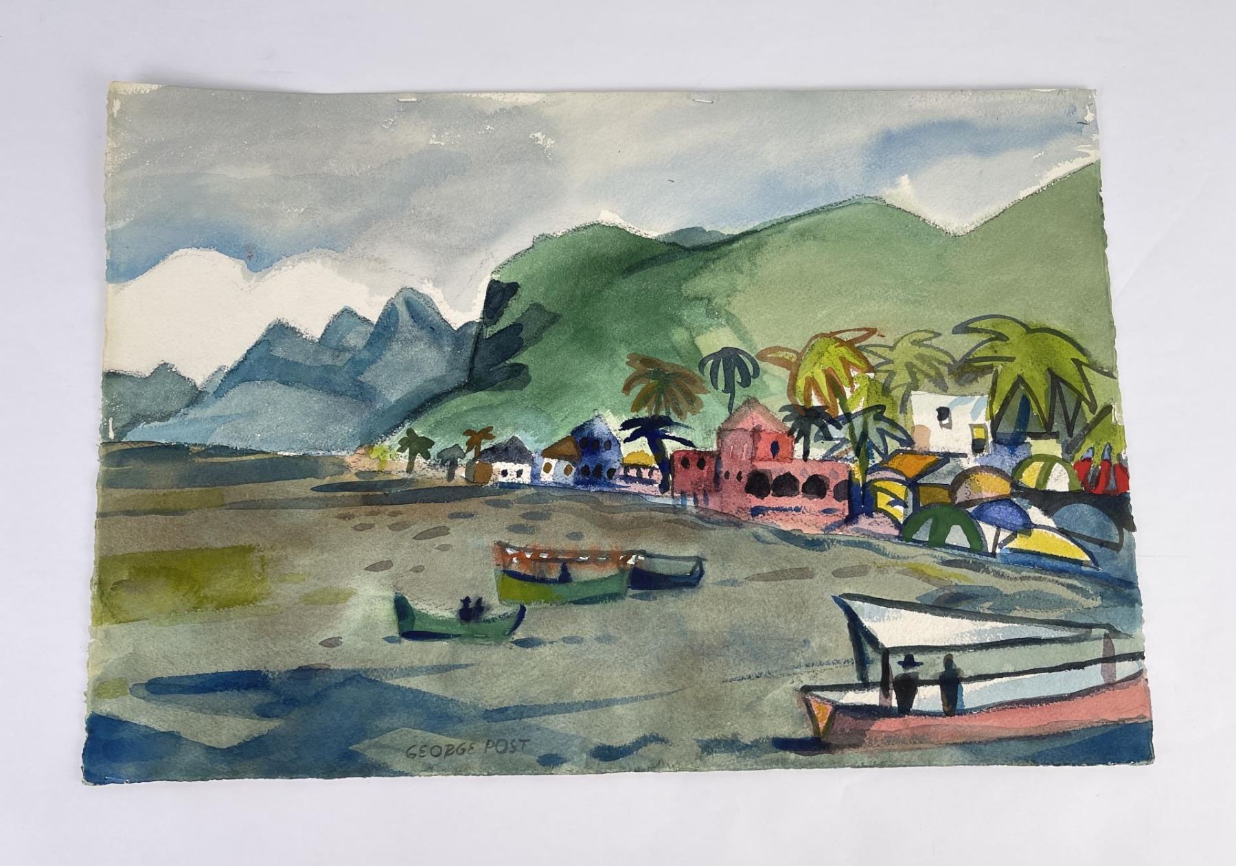 15" by 22". Born in Oakland, CA on Sept. 29, 1906. Post settled in San Francisco in 1919 and, after graduating from Polytechnic High School, studied at the CSFA (1924-26). He began exhibiting in the early 1930s and received favorable criticisms for his watercolors of the San Francisco Bay area and the Mother Lode country. He taught at Stanford University (1940), San Jose State College (1951-52), and the CCAC (1947-72). Having traveled and painted around the world, Post lived in San Francisco until his demise on March 26, 1997. Exh: Beaux Arts Gallery (SF), 1931 (solo); SF Art Center, 1932-34; SFMA, 1936, 1941 (solos); Calif.-Pacific Int'l Expo (San Diego), 1935; AIC, 1936; Calif. WC Society, 1936-53 (prizes); CPLH, 1939, 1945, 1960, 1965 (solos); Oakland Art Gallery, 1936, 1937 (solo), 1947 (prize); LACMA, 1936, 1945 (prize); Laguna Beach Museum, 1942 (solo); Springfield (MO) Museum, 1966; Zellerbach Show (SF), 1975 (1st prize); Challis Gallery (Laguna Beach), 1979 (solo); SWA, 1979 (1st prize). In: CHS; MM; SFMA; CPLH; Oakland Museum; Seattle Museum; San Diego Museum; Santa Barbara Museum; Mills College (Oakland); Sonora High School (mural). Edan Hughes, "Artists in California, 1786-1940" Interview with the artist or his/her family; Who's Who in American Art 1938-70; Who's Who in California 1942; California Art Research, 20 volumes; Artists and People; SF Chronicle, 4-2-1997 (obituary).