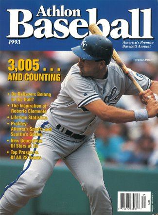 This is an Athlon Sports 1993 MLB Baseball Magazine with Kansas City Chiefs Hall of Famer George Brett on the cover. This Preview has team analysis, predictions, lineups and more for the 1993 Season