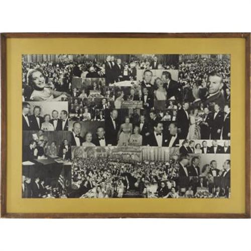 <B>George Burns and Gracie Allen Photo Collage from CENSORED Club Tribute.</B></I> A b&w 31.5" x 21.5" photo collage of images from a Club tribute to comedy duo Burns and Allen, held at the Biltmore Hotel on January 22, 1955, matted and framed to an overall size of 37.5" x 28". In Very Fine to Excellent condition. <I>From the Beverly Hills CENSORED Club Celebrity Roast Archive.</B></I><BR><BR><b>Shipping:</b> Framed - with Glass, Large (<a target="_blank" href="http://www.heritageauctions.com/common/shipping.php">view shipping information</a>)
