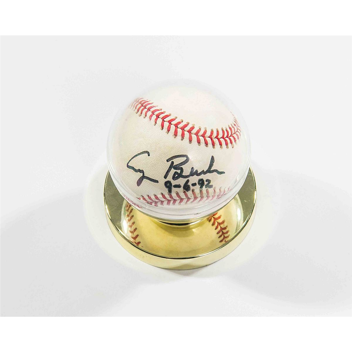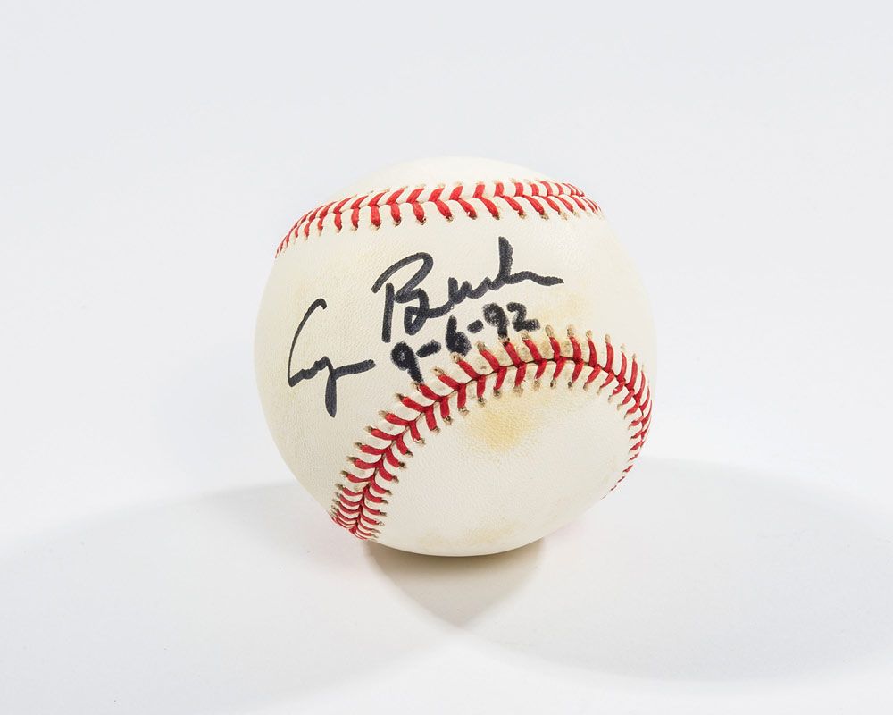 Official Rawlings American League baseball boldly signed in black felt tip on the sweet spot, “George Bush,” dated September 6, 1992, as the incumbent president of the United States. Light scattered toning, otherwise fine condition. Obtained from a White House staff member with direct daily access to the president. A fantastic piece, offering the combination of rare format and presidential-era signature, all tied to Bush’s well-known affinity for America’s pastime.
