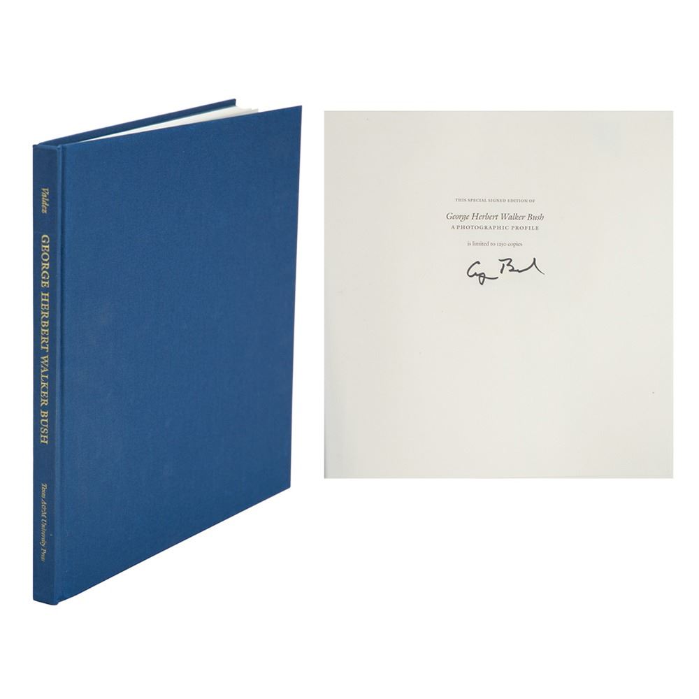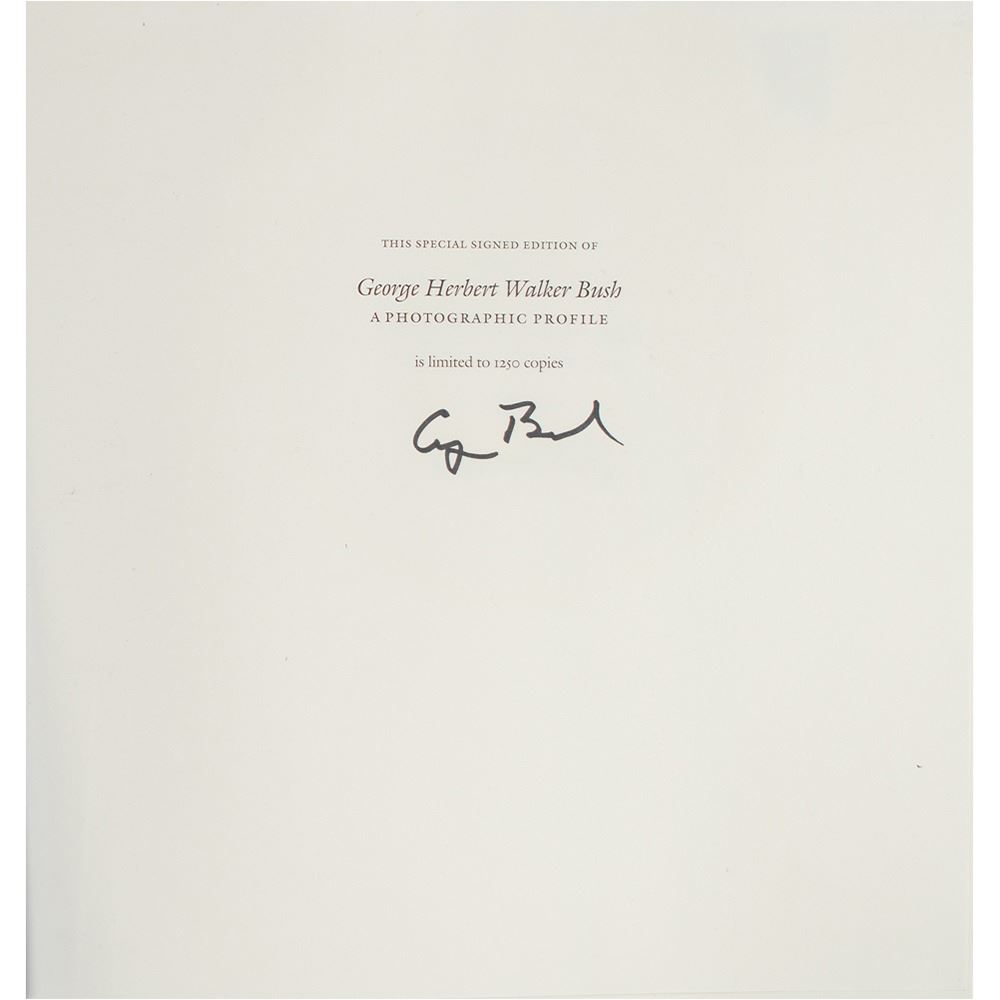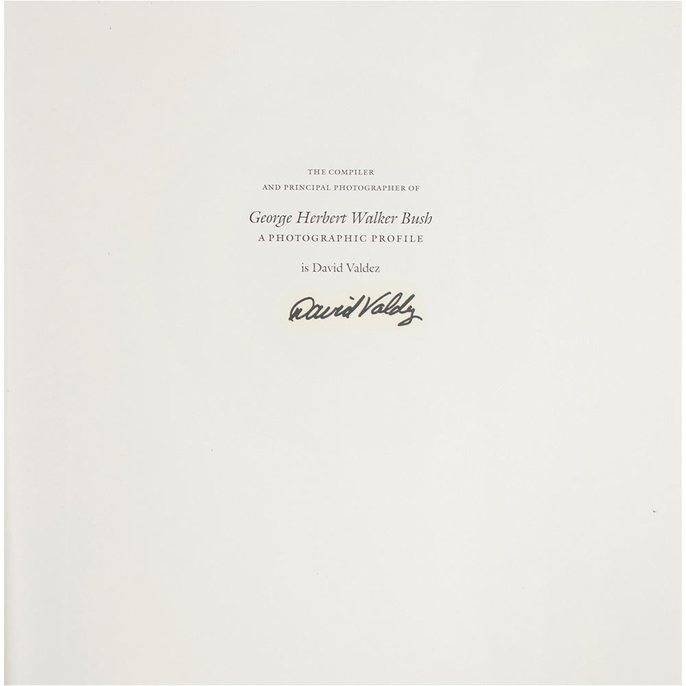Signed book: George Herbert Walker Bush: A Photographic Profile. First edition, limited issue of 1250 copies. College Station: Texas A&M University Press, 1997. Hardcover with slipcase, 11.25 x 11.25, 147 pages. Signed in black felt tip on the colophon, "George Bush," and signed in black felt tip on the following page by photographer David Valdez. In fine condition, with haloing to the photographer's signature.