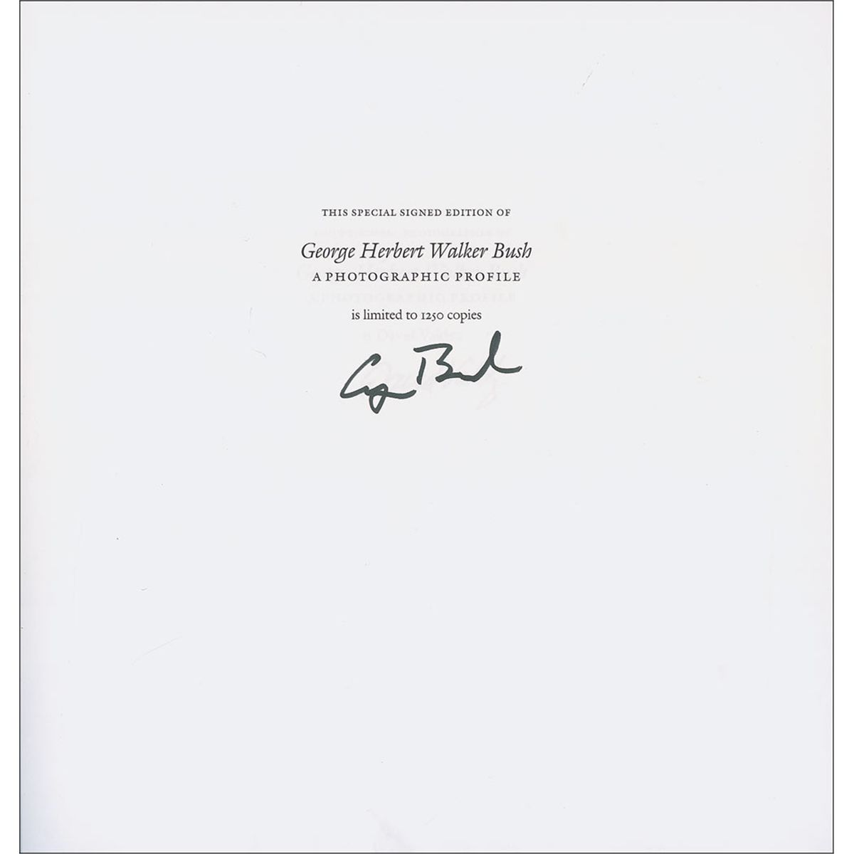 Signed book: George Herbert Walker Bush: A Photographic Profile. Special signed edition of 1250 copies. College Station: Texas A&M University Press, 1997. Hardcover with slipcase, 11.25 x 11.25, 147 pages. Signed in black felt tip on the limitation page “George Bush” and additionally signed on a following page by photographer David Valdez. A few areas of subtle rubbing to slipcase, otherwise fine, clean condition.
