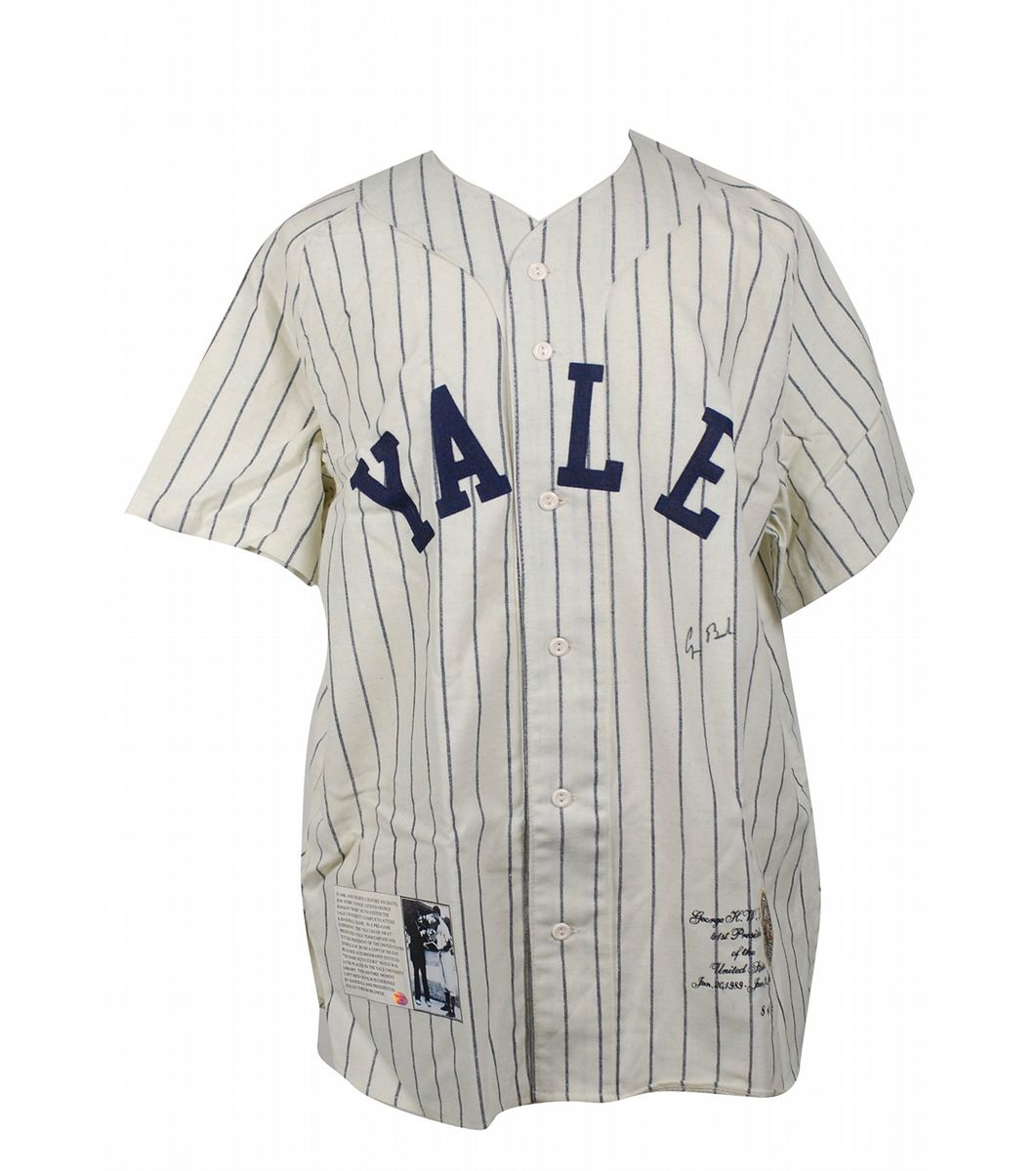 Desirable official limited edition Ebbets Field Flannels replica Yale baseball jersey, with sewn on letters and numbers, numbered 8/89, signed in black felt tip on the front. In fine condition.