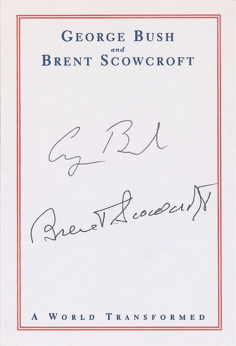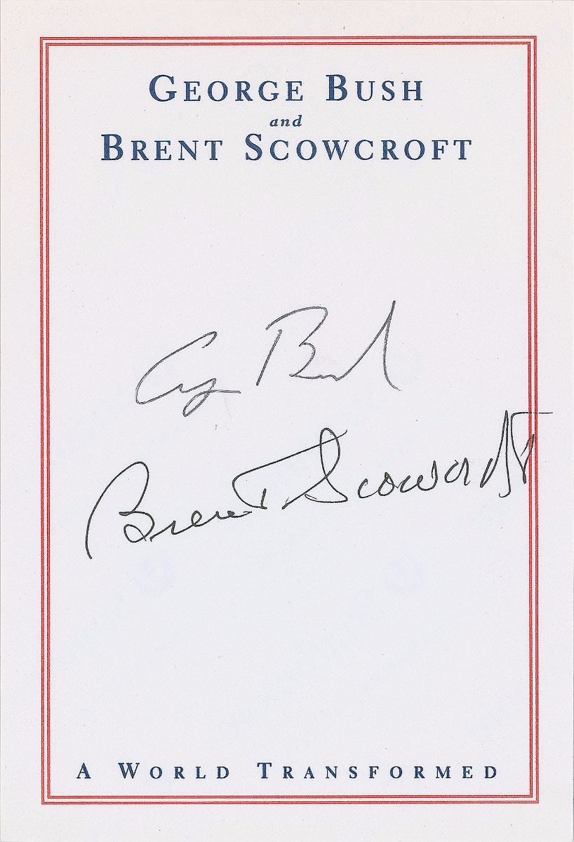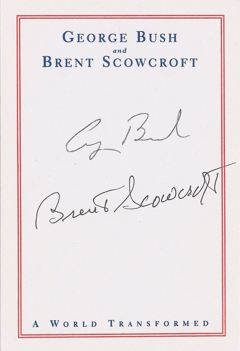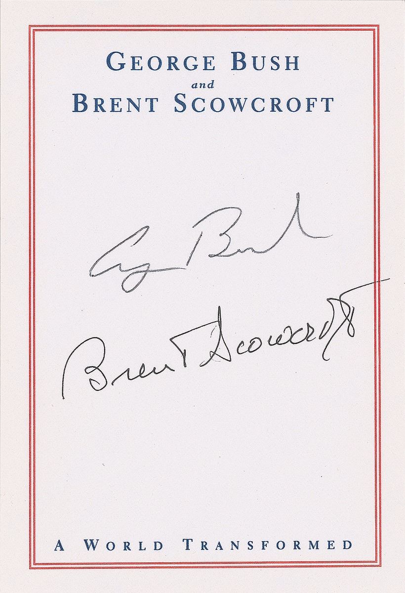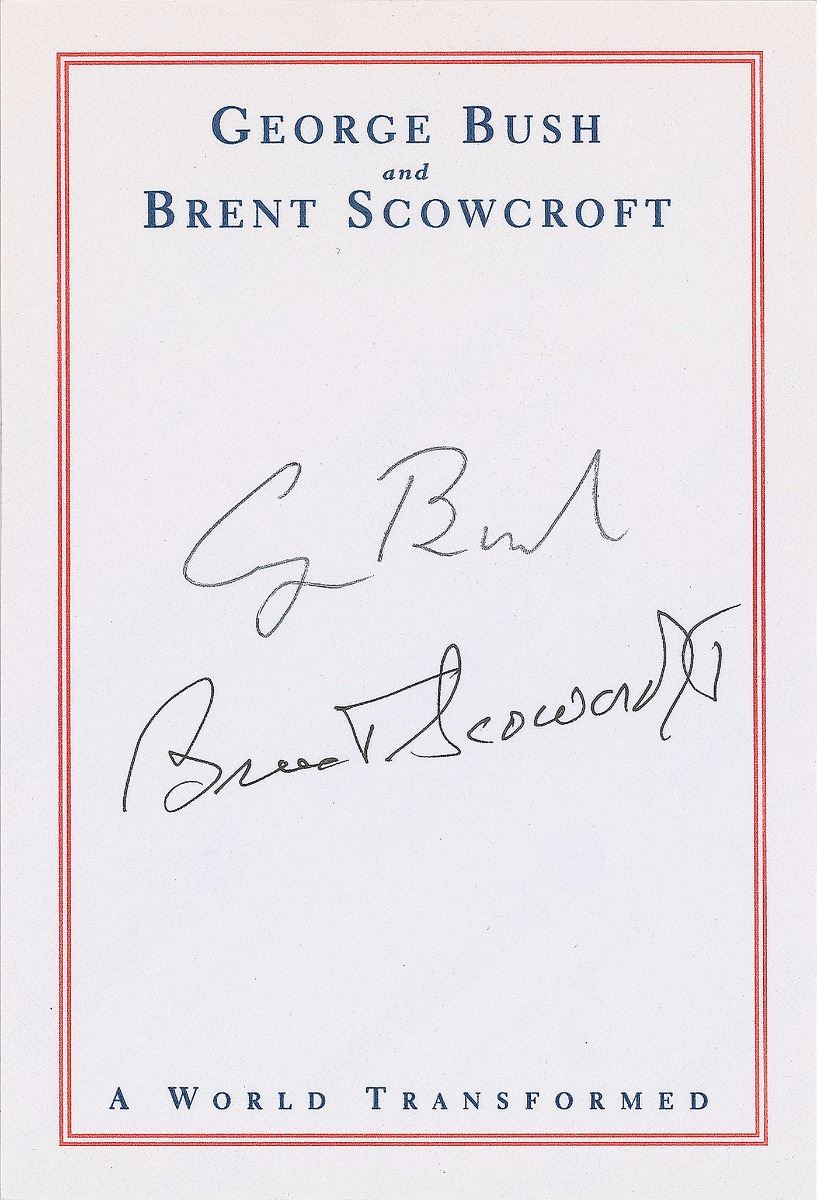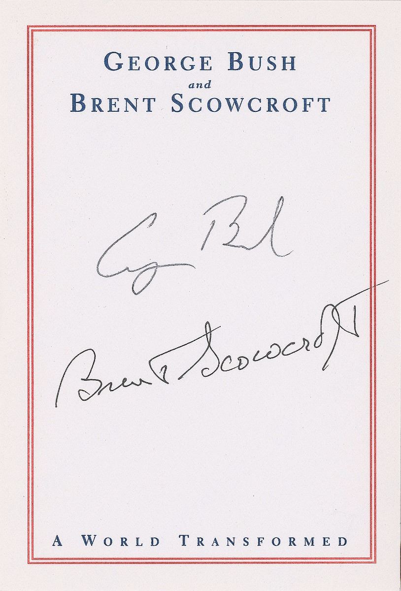 Six unused bookplates for A World Transformed, 3.75 x 5.5, each signed in black ballpoint by George Bush and Brent Scowcroft. In overall very fine condition.