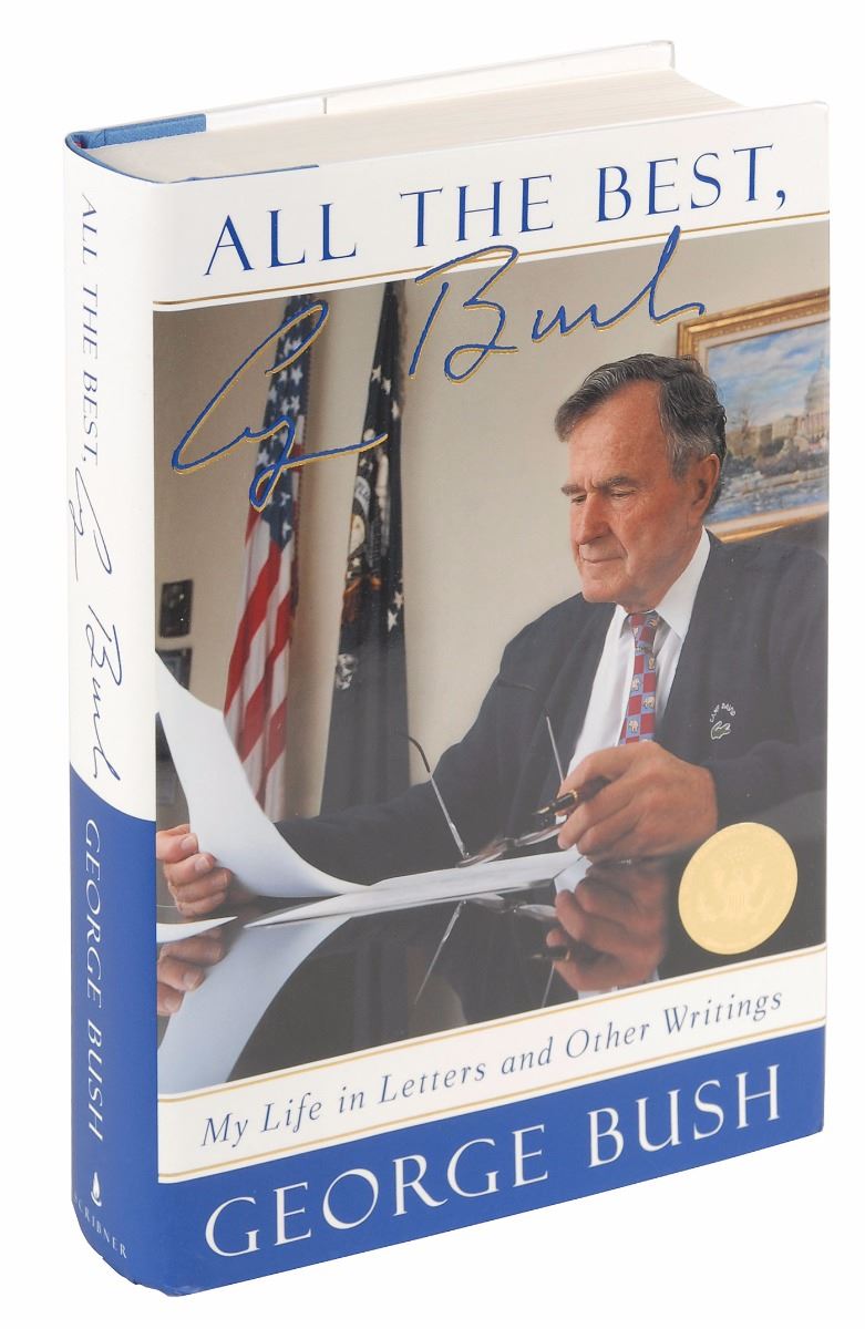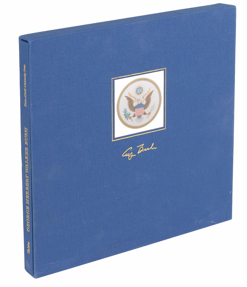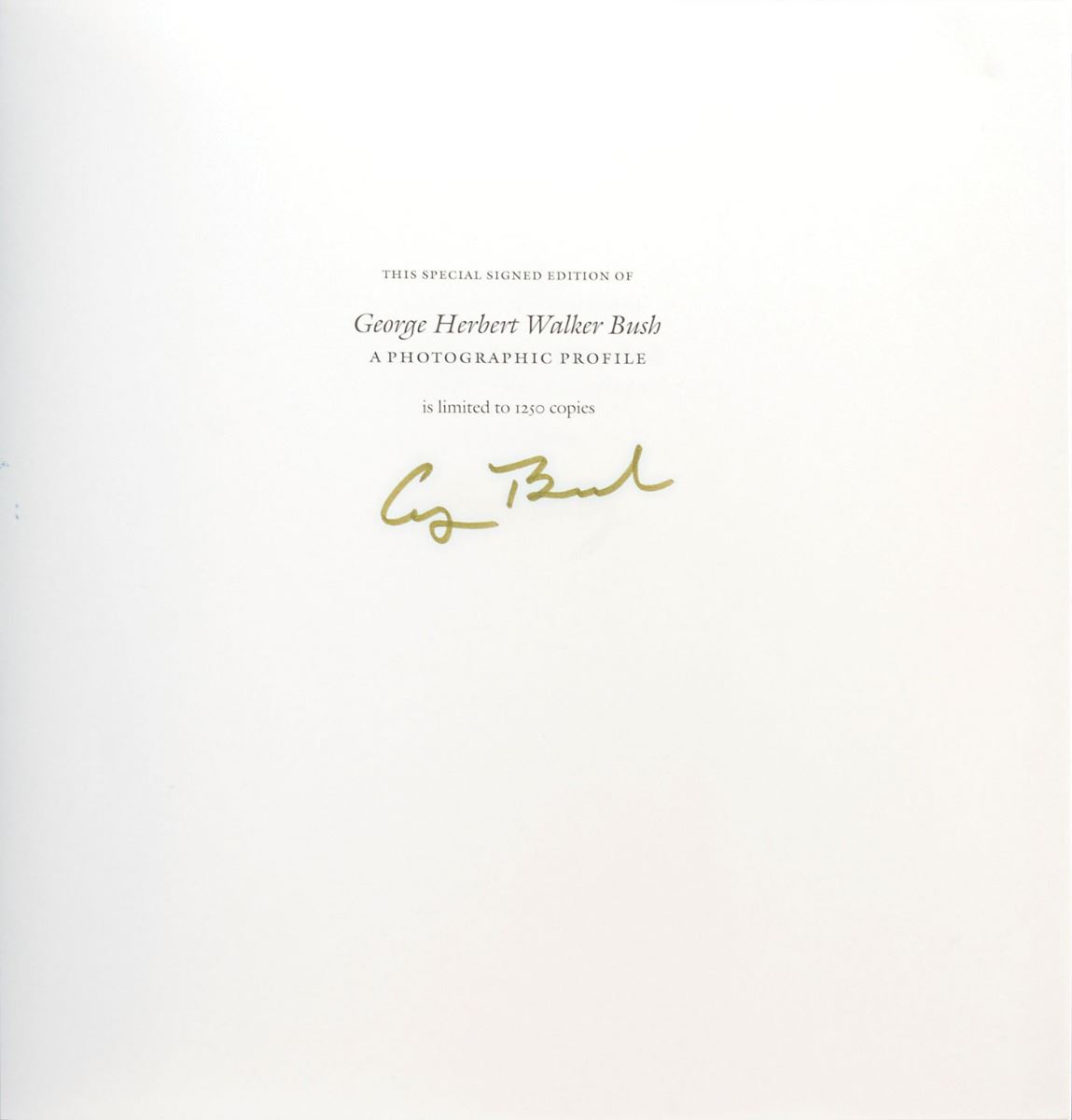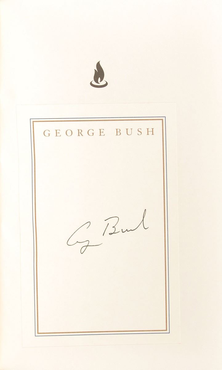 Two signed books: George Herbert Walker Bush: A Photographic Profile. First edition, limited issue of 1250 copies. College Station: Texas A&M University Press, 1997. Hardcover with slipcase, 11.25 x 11.25, 147 pages. Signed in black felt tip on the colophon, “George Bush,” and signed in black felt tip on the following page by photographer David Valdez; and a copy of All the Best, George Bush, signed on a bookplate affixed to an opening page in black ink. In fine condition, with some light haloing to the signatures of the Profile book.