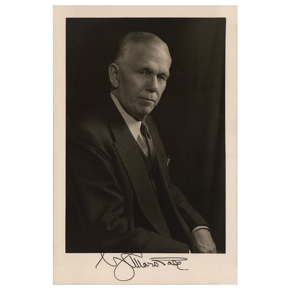 Vintage matte-finish 4.75 x 7.5 photo of George C. Marshall by the Woltz Studio of Washington, D.C., signed in the lower border in fountain pen, "G. C. Marshall." In fine condition, with faint slivering to the edges.
