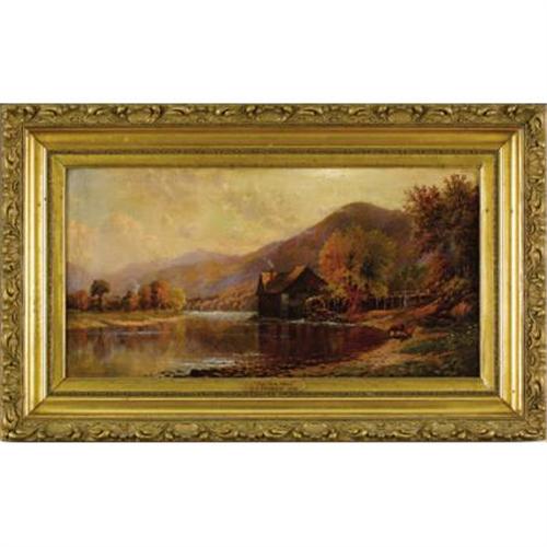 <B>GEORGE C. PEDRICK</B></I> <B>(American, 19th Century)</B></I><BR><I>The Old Mill</B></I>, 1891<BR>Oil on canvas<BR>12-1/4 x 14-1/4 inches (31.1 x 36.2 cm)<BR>Signed and dated lower left: <I>Geo. C. Pedrick 1891</B></I><BR> <B>Condition Report:</B> Very good condition, Original, unlined canvas with three small canvas patches verso.<BR><BR><b>Shipping:</b> Framed - without Glass, Small (<a target="_blank" href="http://www.heritageauctions.com/common/shipping.php">view shipping information</a>)
