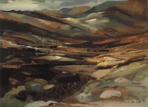 <B>George Campbell RHA (1917-1979)</B><BR>TURF CUTTING IN A VALLEY<BR>signed lower right<BR>oil on board<BR>46 by 61cm., 18 by 24in.<BR>Provenance:<BR>Oriel Gallery, Dublin; Private collection