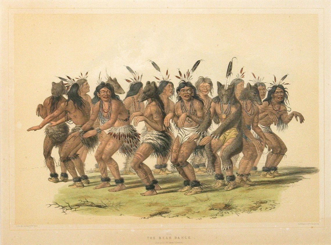 George Catlin (1796-1872). The Bear Dance. 12 ¼" x 17 ¾" hand colored lithograph. First edition. (est. $3,000-4,000). CONDITION REPORTS: www.auctioninsantafe.com/docs/cr2012.pdf