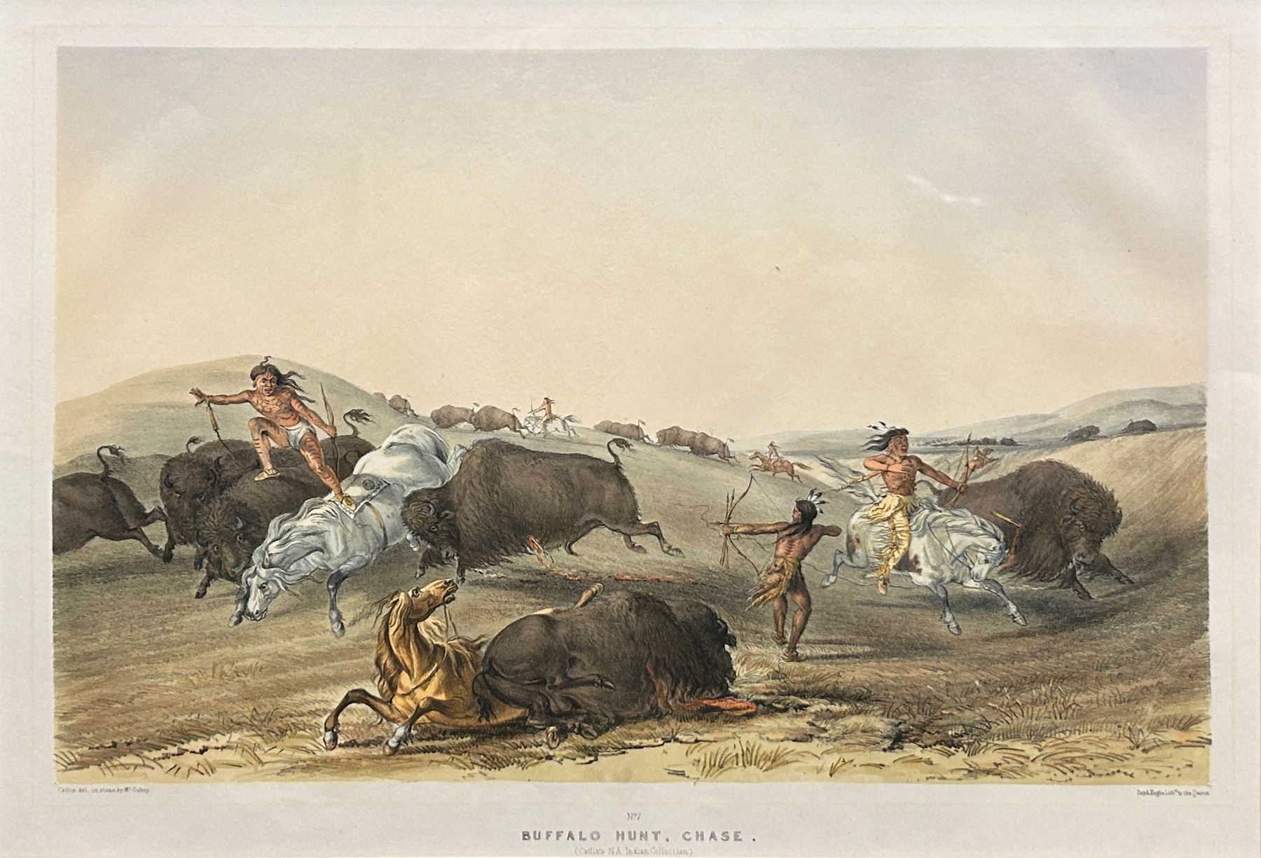 Catlin North American Indian Portfolio, Hunting Scenes and Amusements of the Rocky Mountains. On Stone by McGahey, Day and Hague Lith. to the Queen. 1844.