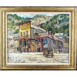 George Cherepov (1909-1987) (Connecticut) Oil on Canvas. "Central Store Mining Town." 24" x 30". signed lower right. Est $1,500 - $2,000.