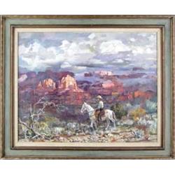 George Cherepov (1909-1987) (Connecticut) Oil on Canvas. "The Lone Rider." 24" x 30". signed lower right. Est $1,500 - $2,000.