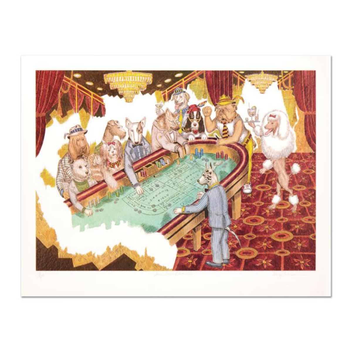 "Seven Come Eleven" is a limited edition lithograph on paper by George Crionas (1925-2004), numbered and hand signed by the artist. Includes Letter of Authenticity. Measures approx. 30" x 23" (border), 27" x 19" (image). Reference #: 235545.